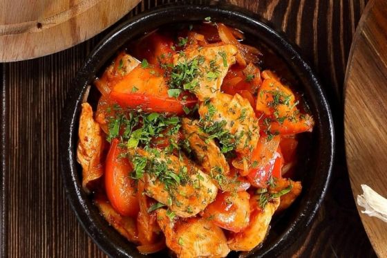 Цыпленок, томат, лук, кинза, специи +контейнер