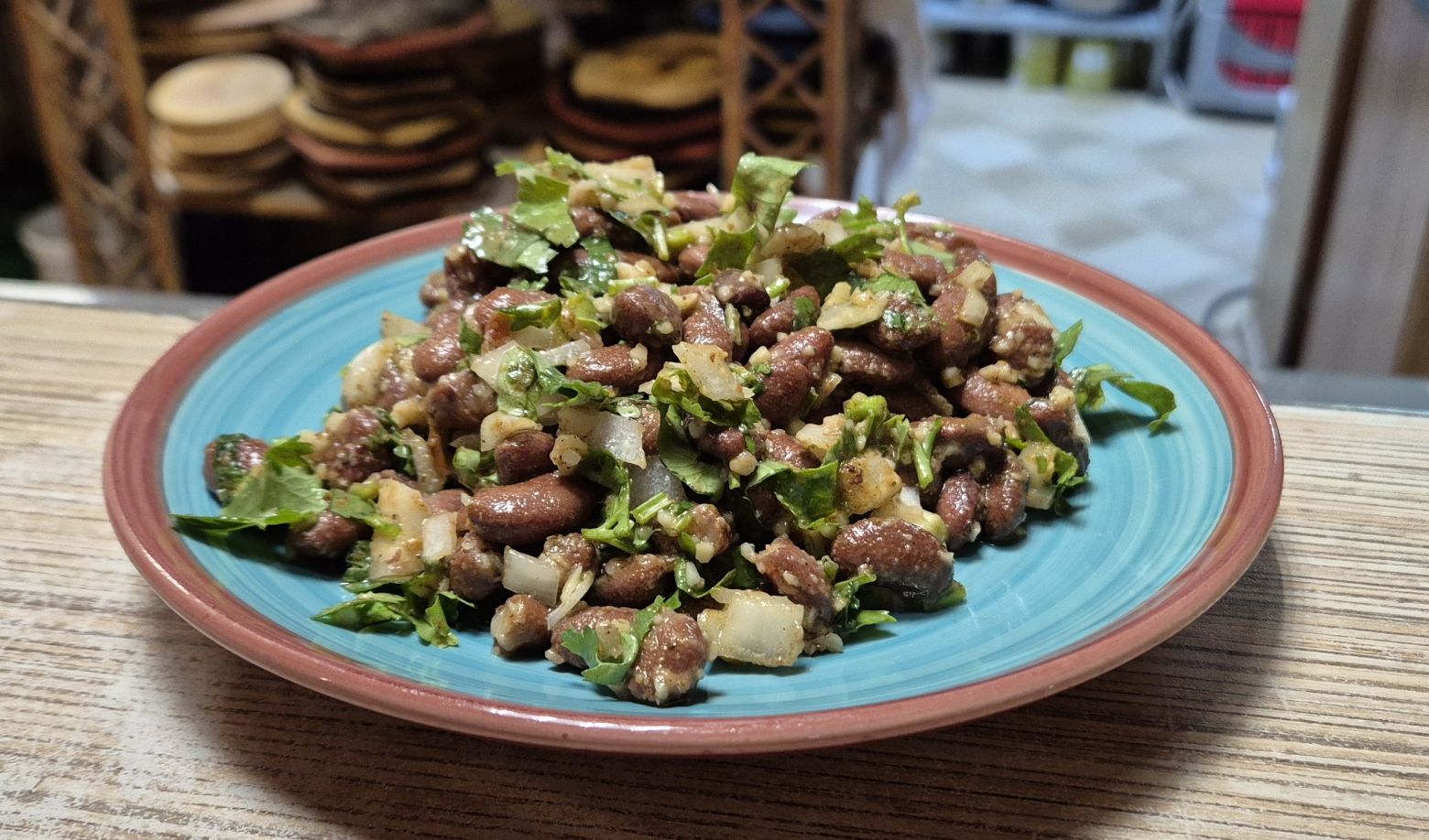 Красная фасоль, лук, зелень, масло, специи +контейнер