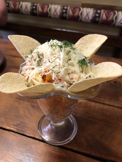 Состав: куриное филе, чипсы, сыр, майонез, морковь, специи